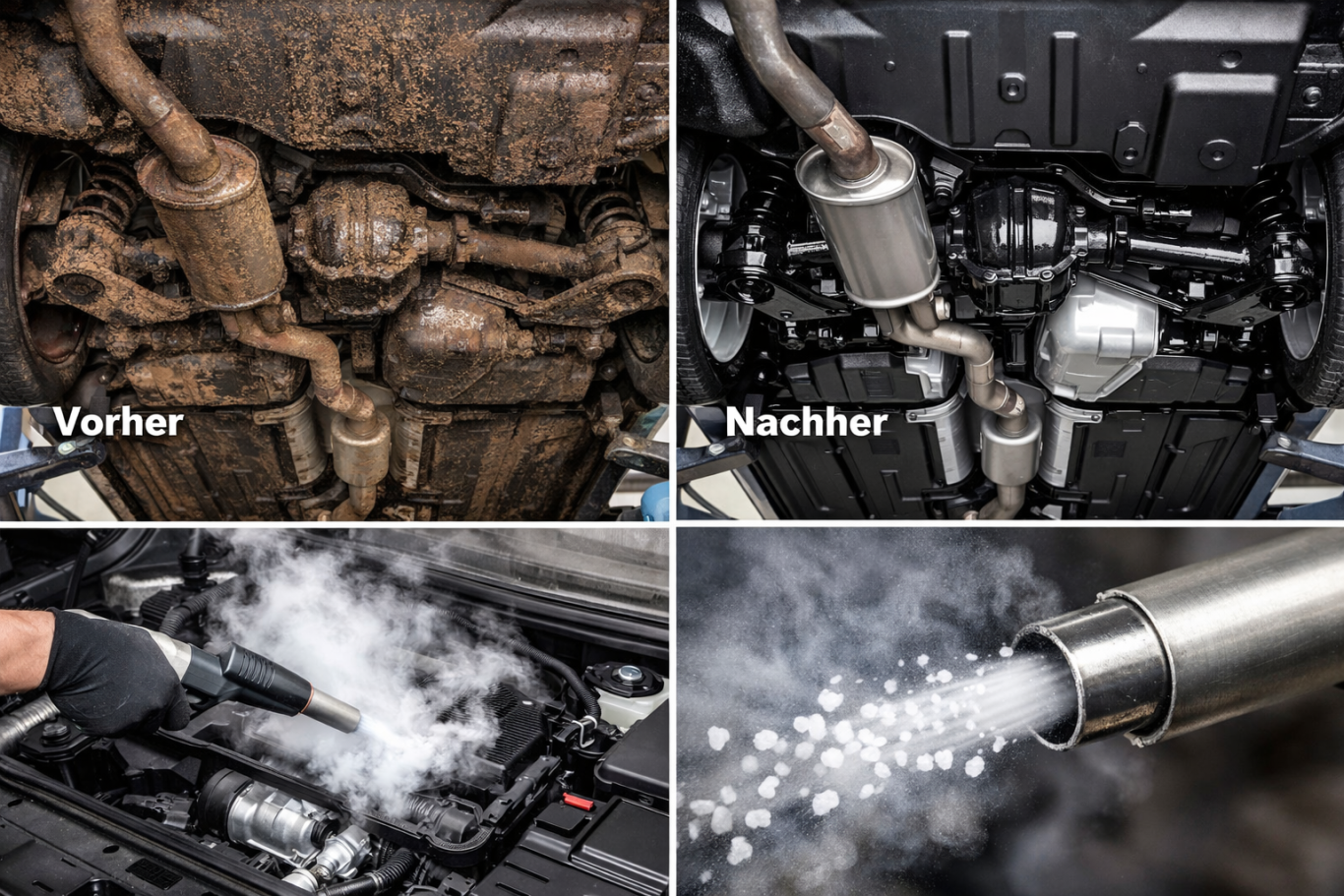 Das Trockeneisstrahlen ist die professionelle Lösung für eine gründliche, sichere und materialschonende Reinigung von Unterboden und Motorraum. Es verbindet höchste Reinigungsleistung mit maximaler Schonung – perfekt für anspruchsvolle Fahrzeugbesitzer.